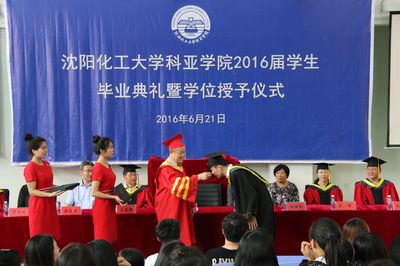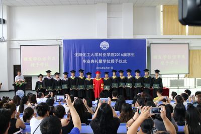 上午九点,毕业典礼正式开始。奏唱国歌过后,副院长王喜魁和党总支书记王一女分别宣读了学校准予学生毕业、授予学士学位的决定和我校荣获2016年辽宁省优秀毕业生学生、校优秀毕业生学生、校优秀毕业论文学生、考取研究生获校励志奖学金学生名单。校学位评定委员会主席、院长杨化仁为各专业学生代表依次授位,校领导及学位评定委员会委员为毕业生代表颁发毕业证书及各奖项荣誉证书。