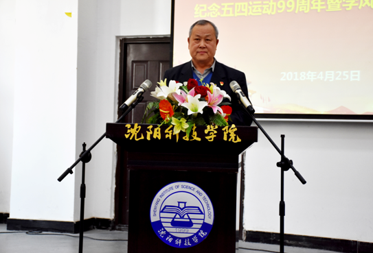 颁奖仪式结束后,杨化仁校长发表了以《勇走时代前列 绽放青春光彩争 争做有追求、有道德、有知识的沈科好青年》为题的讲话。讲话中,杨校长首先向受奖的152个先进集体和952名优秀个人表示热烈祝贺,对过去一年我校在青年教育事业中取得的可喜成绩给予充分肯定,并要求全校上下要继续不忘初心、牢记使命,坚定信念、永跟党走,毫不动摇地抓好青年教育,在久久为功中引导帮助广大青年学子成就人生出彩。同时,杨校长还向学子提出了殷切希望:一是胸怀梦想、坚定信念,争做有追求的沈科好青年,在新的历史征程中展示青春风采、实现人生价值。二是修德立行、锤炼品格,争做有道德的沈科好青年,在推进和谐社会建设中自觉维护社会公德、遵守职业道德、传承家庭美德。三是刻苦学习、全面发展,争做有知识的沈科好青年,以只争朝夕的精神,把学习内化为人生态度、外化为生活追求,以脚踏实地的行动,去谱写更加壮丽的青春诗篇!
