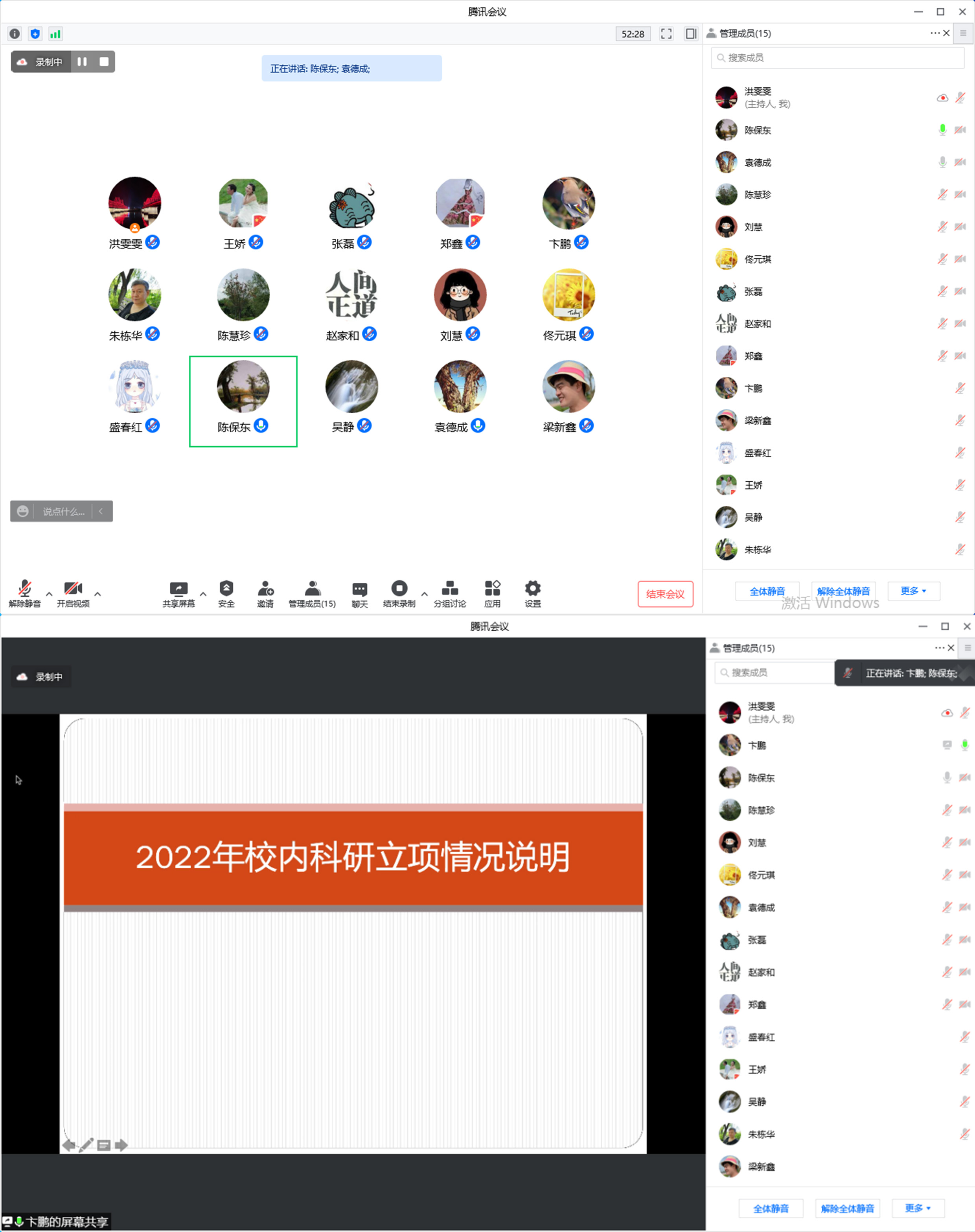 近日,学校利用晚间,通过腾讯会议组织召开了2022年学术委员会第一次会议,会议由校长陈保东主持,副校长袁德成、校长助理张磊以及全体委员参会。