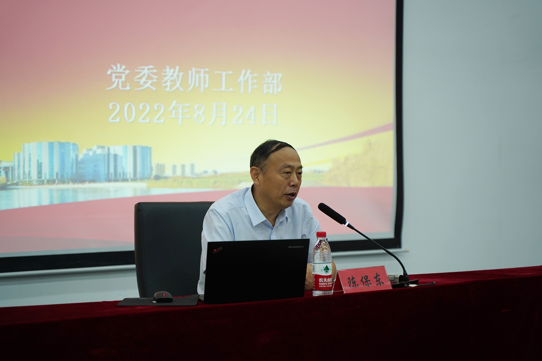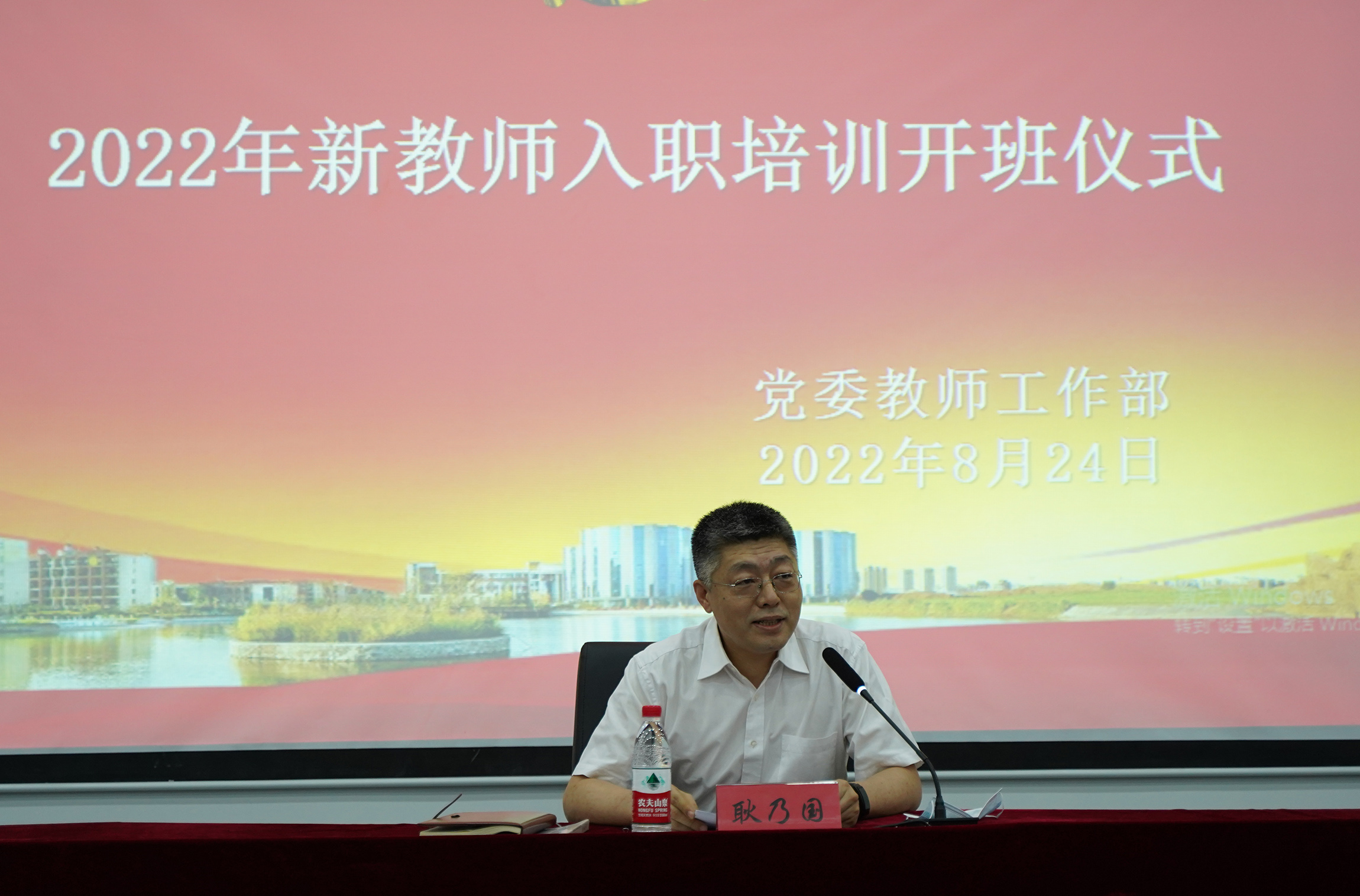8月24日上午,我校2022年新教师入职培训开班仪式在图书馆报告厅隆重举行。党委书记耿乃国、校长陈保东、副校长张丽影、副校长杨春光、副校长高洪震、校长助理李鲁宁、正校级调研员郭秀丽出席了本次开班仪式。会议由党委教师工作部副部长李媛媛主持。
