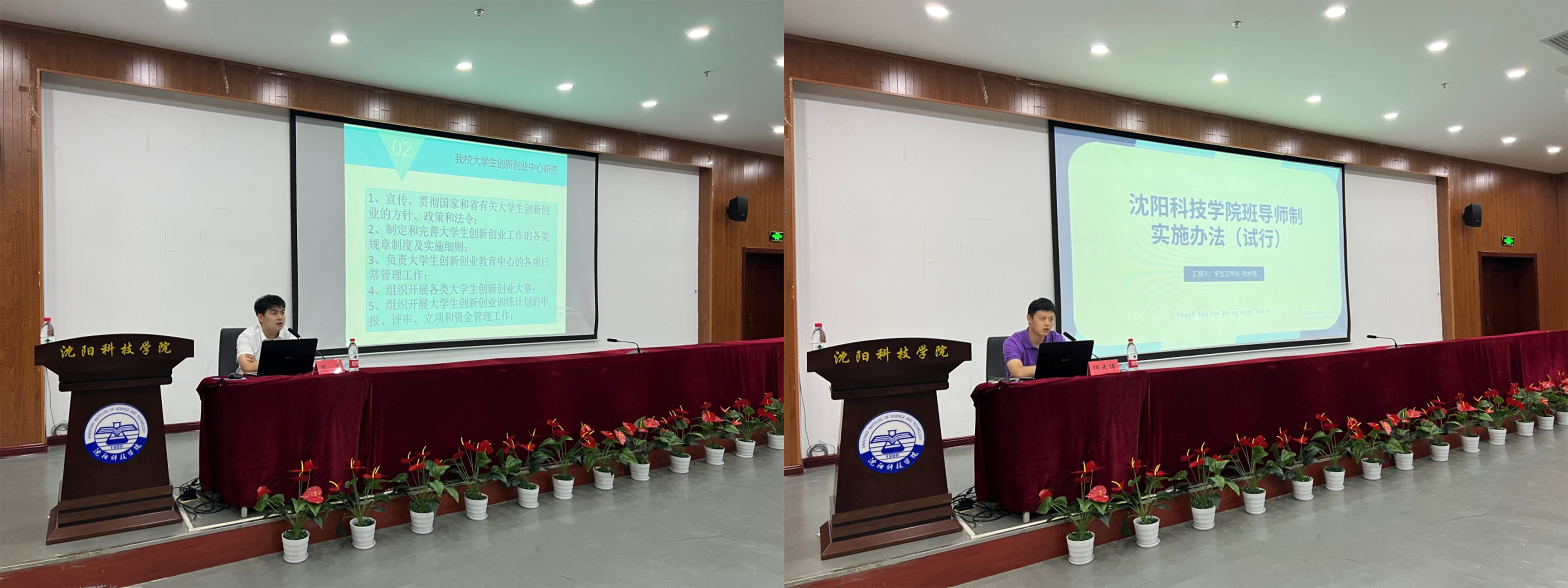 8月25日,由我校人事处副处长李媛媛、科技处副处长卞鹏、大学生创新创业教育中心主任田川、学生处处长何大伟继续为新教师做入职培训。