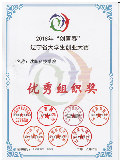 日前,由团省委、省教育厅、省科技厅、省科协和省学联共同举办的2018年“创青春”辽宁省大学生创业大赛各高校总体结果揭晓。我校在全省74所参赛高校中名列第23名,在全省民办高校中名列第2名,韩晓静、田川、王爽、高慧妍、厉安昕、卞鹏、李倩、邹强8名教师获得优秀指导教师称号,我校荣获优秀组织单位奖。