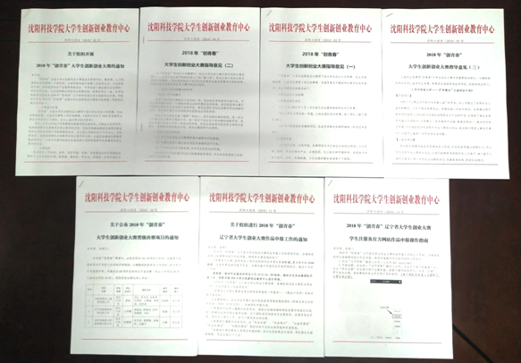 为更好的服务我校师生参加本次大赛,大学生创新创业教育中心对比赛进行了全程跟进,按学校要求,发布7份竞赛组织文件涵盖竞赛要求、指导意见和网上申报教程,确保竞赛申报工作的顺利开展。大赛期间,“沈科创新创业”公众号专项成立了《沈科创业讲坛》板块,特别推送了相关的培训课程,并在师生中取得了良好的反响,也为今后相关竞赛工作的开展积累了宝贵的经验。