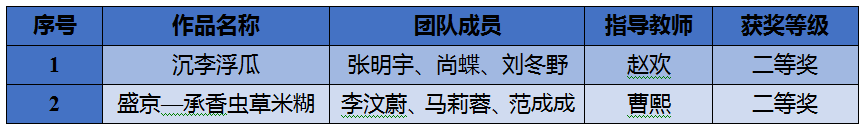 近日,由辽宁省教育厅主办,中共北票市委、北票市人民政府和沈阳农业大学承办的2019年第二届辽宁省普通高等学校本科大学生食品创新大赛在北票市委党校圆满落幕。我晋级决赛的两项作品均获得二等奖。