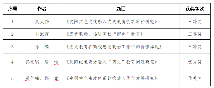 近日,沈阳市社会科学界联合会发布了《关于公布沈阳市“庆祝中国共产党成立100周年”主题征文活动结果的通知》(沈社科联发[2021]16号)文件,经本人申报、学校推荐、市社科联专家评审以及面向社会公示,全市共有100篇征文获得奖项,其中我校5篇征文喜获佳绩!