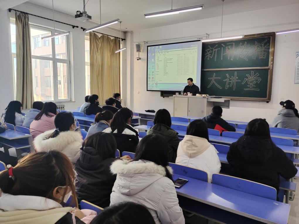 【讲座】12月1日,管理系特别邀请沈阳市新闻工作者协会副主席兼秘书长罗晋开展主题为“新闻传播大讲堂”的讲座。网络与新媒体专业教研室主任丁菲菲、网络与新媒体专业全体师生参与此次讲座。本次讲座内容分别从政治观念、新闻差错的典型案例以及新闻业务报道领域的基本常识等三大方面为网络与新媒体的学生加深专业认识打下了夯实的基础。罗晋用生动幽默的语言将马克思主义新闻观完美融入教育,提高了学生的新闻媒介素养,加强新闻舆论的学习。(根据管理系供稿修改 通讯员:武擎昊)