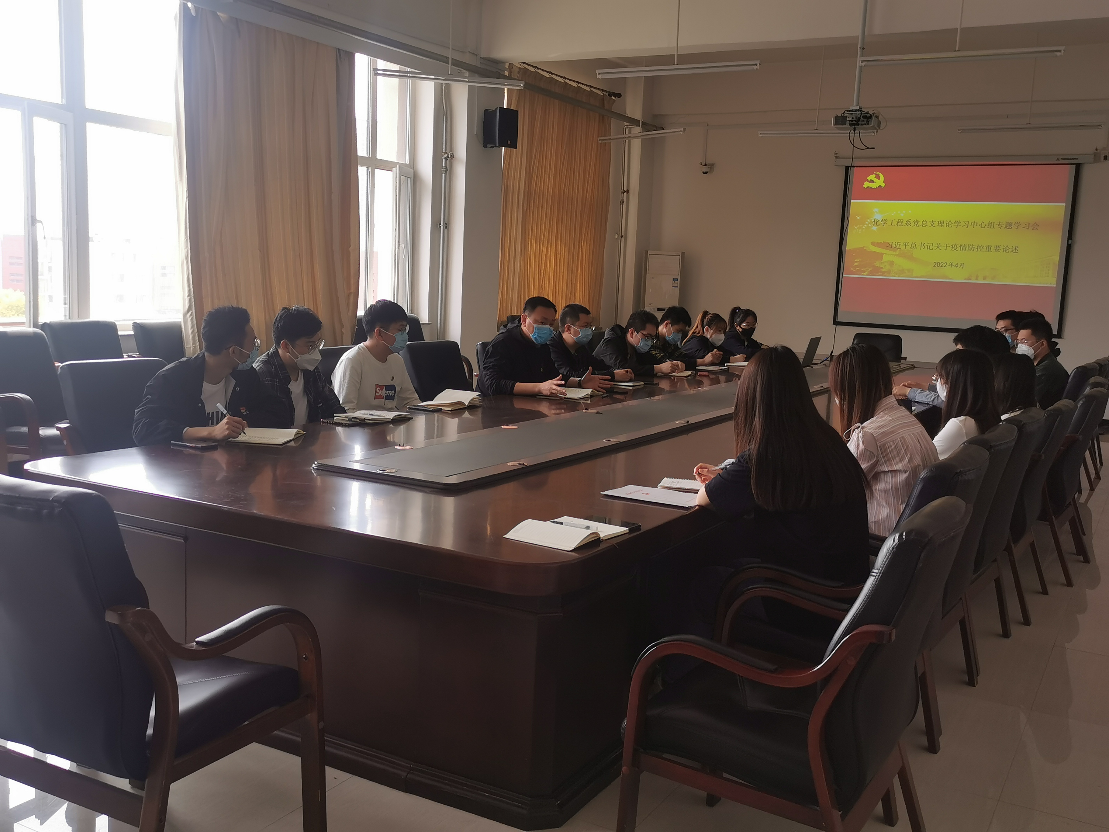 【党建】5月4日,化学工程系党总支开展集体学习会,学习习近平总书记关于疫情防控的重要论述,贯彻落实省委、省政府和省委教育工委、省教育厅疫情防控工作要求,并就系部疫情防控工作进行安排部署。总支书记都颖主持会议。会上,都颖传达学习了2020年以来总书记关于疫情防控的重要论述,领学了《本土聚集性疫情校园应急防控措施20条》,强调始终绷紧疫情防控这根弦,持续抓紧抓实抓细疫情防控各项任务,坚决筑牢校园疫情防控防线。参会党员学生表示,要继续发挥党员的先锋模范作用,带头投身到校园疫情防控工作中,当前已封校五十余天,又值五四青年节之际,校园疫情防控取得的阶段性成果是来之不易的,这来自于系部全体师生共同的努力,接下来将继续坚持,不负使命,共同迎接本次疫情防控的最后胜利。