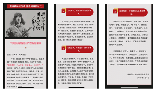 3月3日,我校积极参与辽宁高校“雷锋精神我传承·青春闪耀新时代”大接龙活动,宣传雷锋事迹,对近年来学雷锋特色活动进行展示。