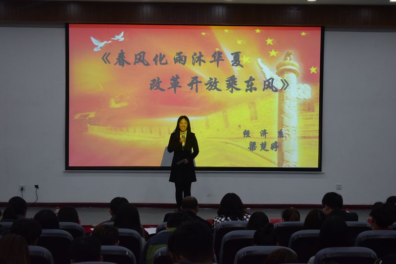 为庆祝改革开放40周年,深入学习贯彻习近平新时代中国特色社会主义思想和党的十九大精神,进一步弘扬新时代辽宁精神,按照省委宣传部、省委教育工委文件要求,由我校党群工作部主办、校团委承办的“庆祝改革开放40周年·弘扬新时代辽宁精神”主题演讲比赛,于10月17日13:00在图书馆报告厅激情开赛。校团委书记何大伟、基础部主任刘芳和赵家和 、李淑娟、刘大伟、刘丹丹等多名教师到场担任评委。