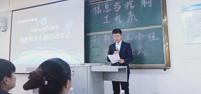 为响应国家“大众创业、万众创新”的号召,落实我校创新创业相关工作,更好的激发师生科技创新与创业积极性,为科技成果转化提供服务,为大学生创业提供帮助,加快应用科技大学建设进程。信息与控制工程系于11月20号举行创新创业小组启动仪式。本次出席老师有系主任朱栋华老师,大学生创新创业教育中心副主任田川老师,系副主任李姝奕老师,分团委书记刘圣西老师,以及信息系相关创新创业指导教师。