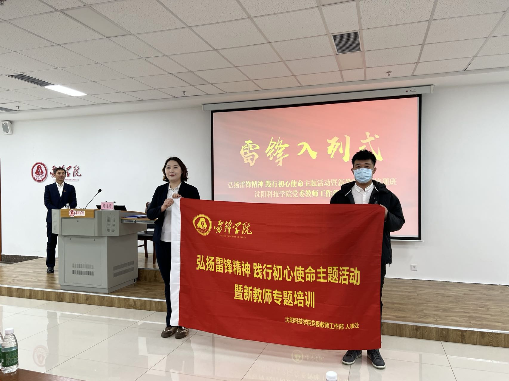 下午,培训班举行了庄重的雷锋入列式和授旗仪式,新教师云煜韬作为代表接过先辈光荣的旗帜。