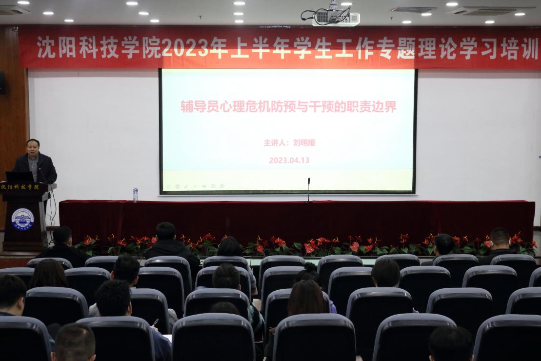 为推动我校学生工作队伍政治理论学习常态化,413日下午,学生处组织召开2023年上半年学生工作专题理论学习培训,邀请到辽宁生态工程职业学院副教授刘明耀作专题讲座,党委学生工作部部长、学生处处长何大伟主持会议,全体辅导员及学工教师参加了学习培训会。