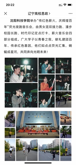 扎实开展组织化学习教育活动。以全校215个团支部为基本单位,开展“党的青年运动史”“建团100周年大会精神”“新时代的伟大成就”党的二十大精神等专题理论学习会,参与“青年大学习”网上主题团课,引领沈科青年全面系统学习领会习近平总书记关于青年工作重要论述,推动党的二十大精神深入人心。