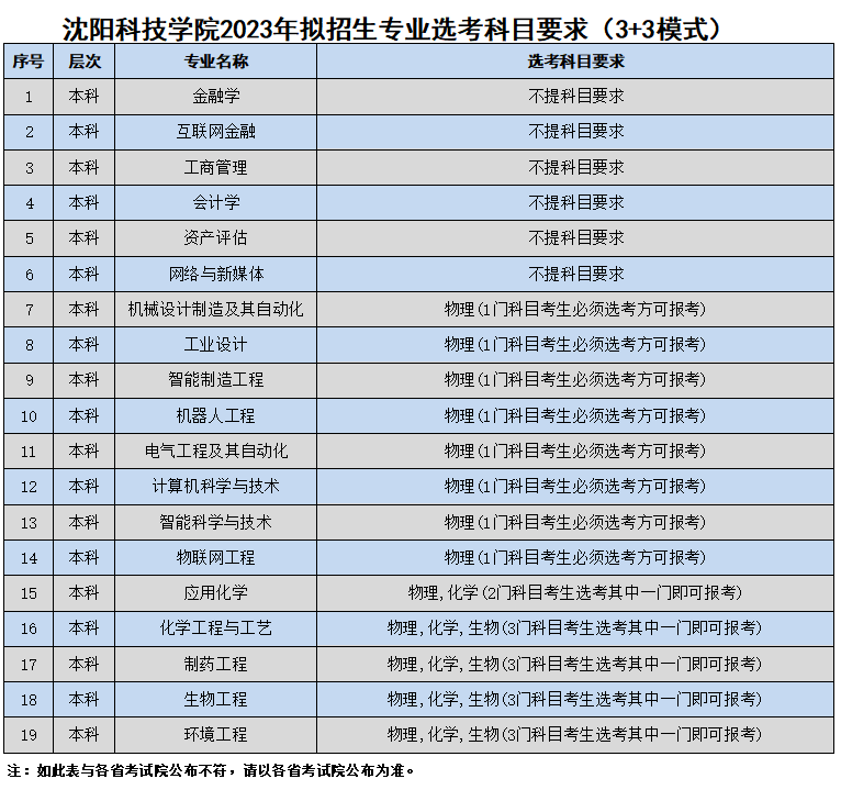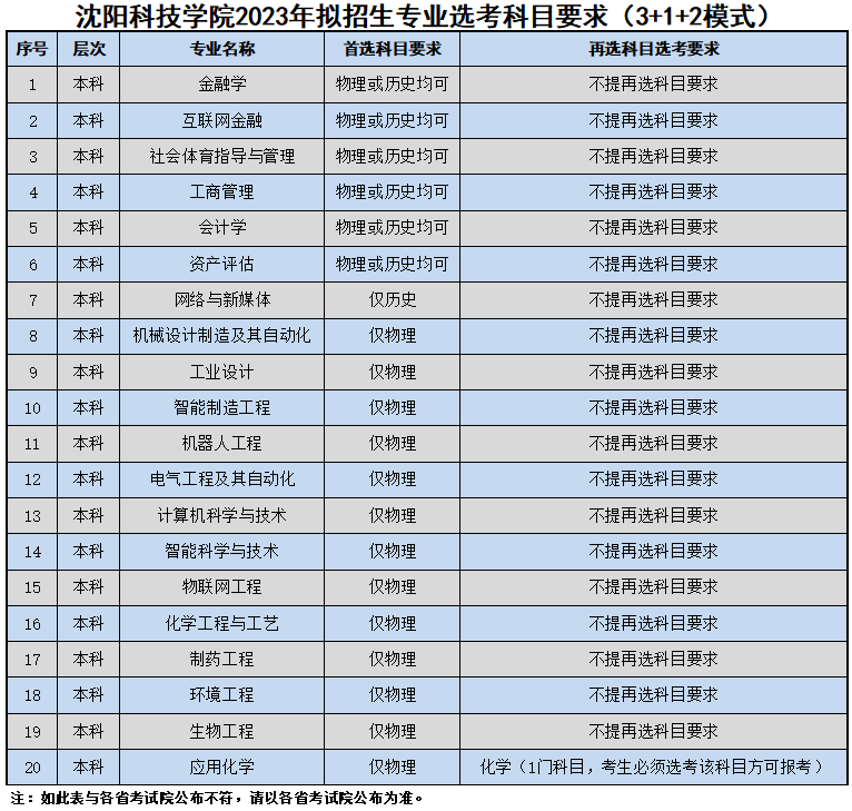 2023年拟招生专业选考科目要求
