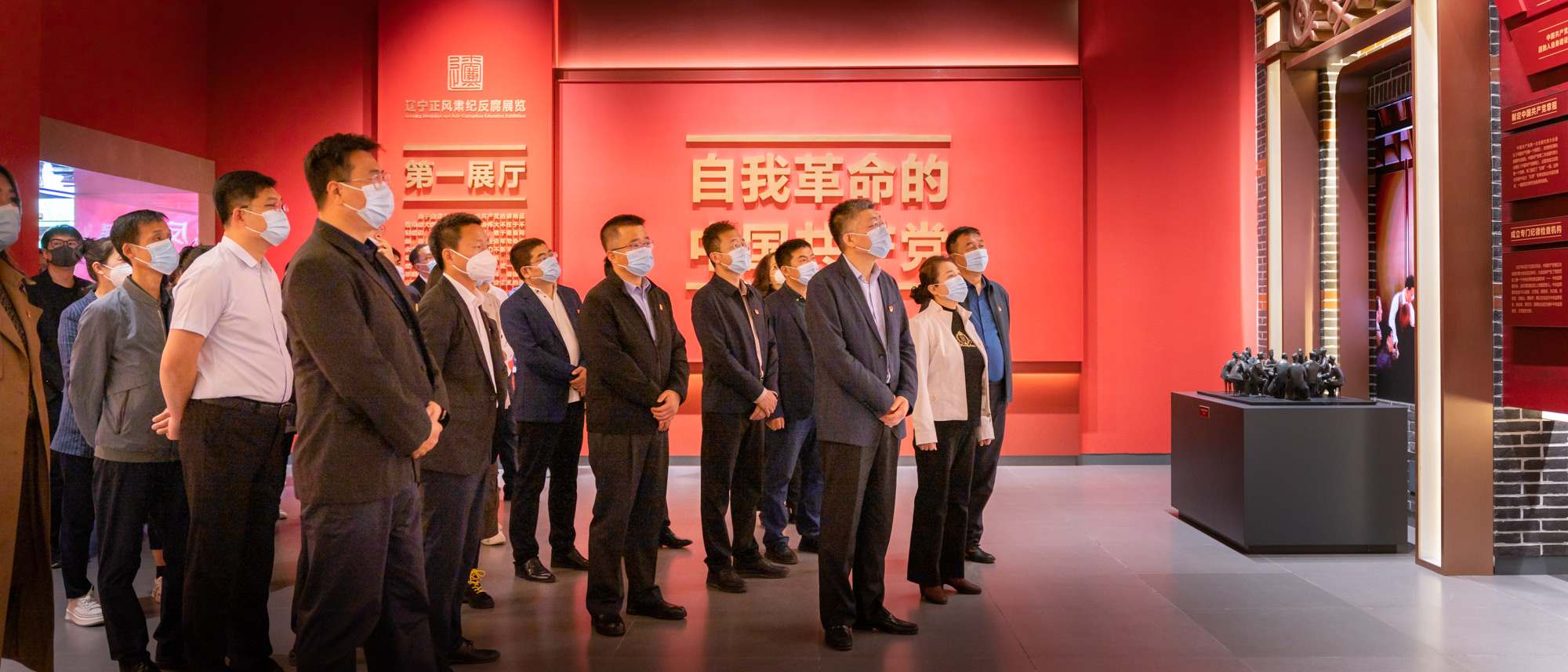 辽宁正风肃纪反腐展览以“党的自我革命”为主题,通过文字、图片、浮雕和环幕短视频、案例警示、先进典型等传统教育与现代化教育手段有机结合,从不同角度、不同层面展现了我们党勇于自我革命的实践成果,展现了辽宁反腐败斗争取得压倒性胜利并全面巩固的工作成果。走进展馆,在讲解员的引导下,全体党员干部认真聆听、驻足观看、互动参与、切身感受,进一步了解到党百年历史下的自我革命成就和我省反腐败斗争取得的显著成效,深刻体会到违纪违法党员干部腐化堕落后忏悔之心,全面增强了红线意识和底线思维。