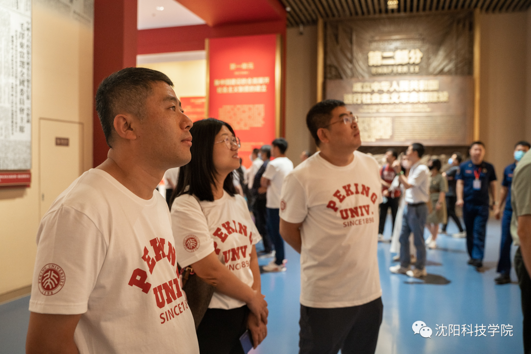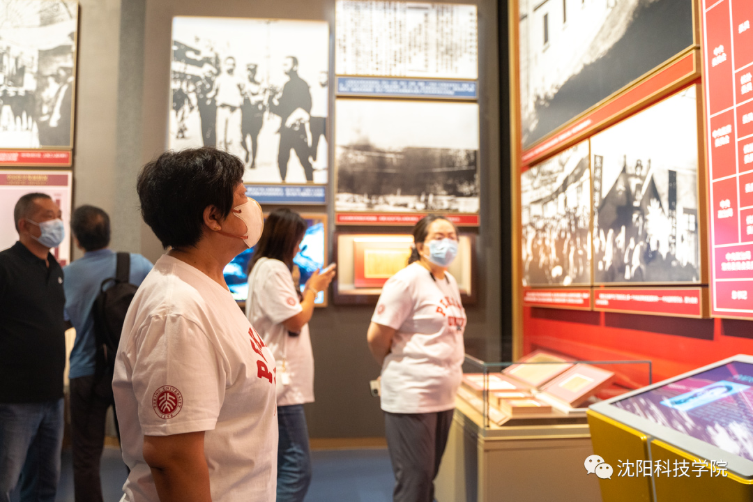 上午,步入气势恢宏的中国共产党历史展览馆,全体学员为极具视觉冲击力的《长城颂》漆画所震撼。并通过对4个主题展厅、2600余幅图文、3500多件文物实物展品的浏览,身临其境般地体会到中国共产党走过的峥嵘岁月以及中华民族不屈不挠、艰苦卓绝的奋斗史。参观结束后,大家纷纷表示,这既是一堂生动的党史学习教育课,也是一次心灵的震撼与洗礼。要将从百年党史汲取的智慧转化为干事创业的内驱动力,做到学思用贯通、知信行统一,努力打造出学校全链条优质教育品牌,在辽宁全面振兴新突破中展现更多沈科人的智慧与力量。