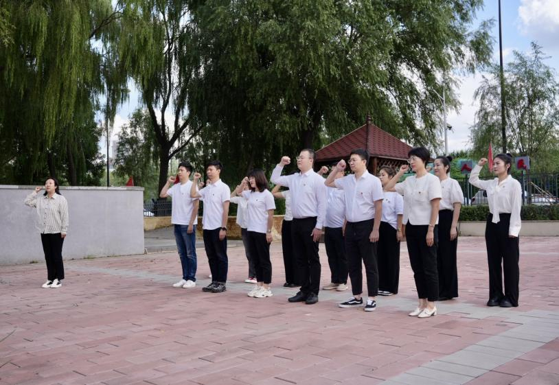 在谷沉稻香的金秋之中、在跨越时空的红船之畔,李姝奕带领党员教师重温入党誓词,宣誓铿锵有力、掷地有声。