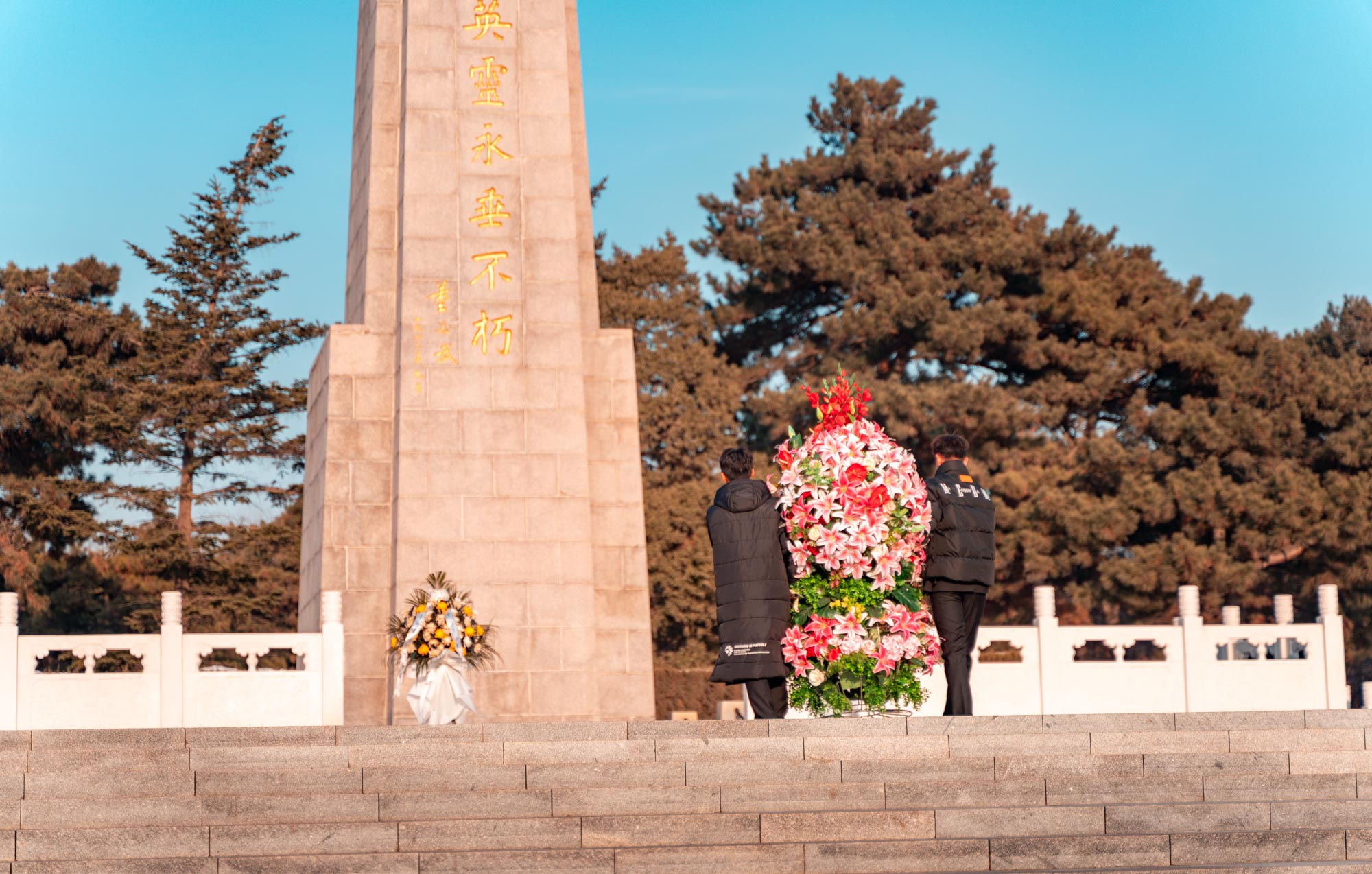 仪式结束后,师生前往抗美援朝烈士纪念碑广场进行祭扫仪式,向革命英烈鞠躬默哀,敬献花篮;面对党旗,重温入党誓词,表达对先烈们的崇高敬意和深切悼念之情。