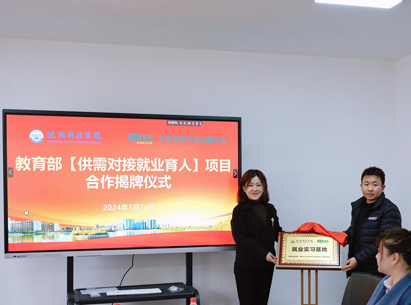 为推动就业与培养有机联动、人才供需有效对接,为辽沈地区产业集群及企业培养高素质应用型人才,促进我校毕业生充分高质量就业,3月14日,我校与新东方大学事业部沈阳中心举办“教育部供需对接就业育人项目”及“就业实习基地”揭牌仪式,副校长王鸿鹏及相关职能部门负责人出席揭牌会议。