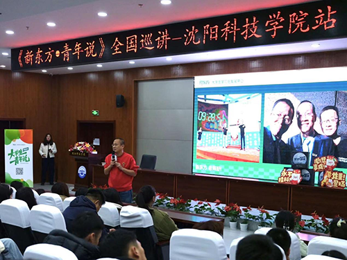 会后,由新东方首席主讲王江涛老师为我校同学带来《大学生青年说》职业发展公益讲堂。讲座过程中,王老师旁征博引,以形象幽默、简洁有力的语言分享人生经验,并结合自己的求学、创业过程与现场同学进行交流,鼓舞现场同学勇于面对人生的机遇和挑战,在大学阶段开始人生规划,执着地追求人生理想。本次讲座得到了现场同学们的一致认可。