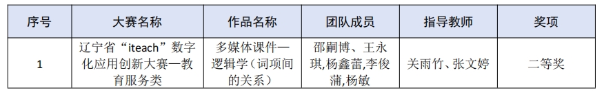 在2024年辽宁省“iteach”数字化应用创新大赛教育服务类中,获得二等奖1项。