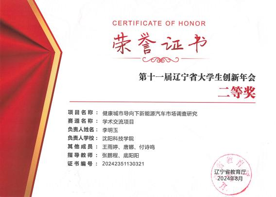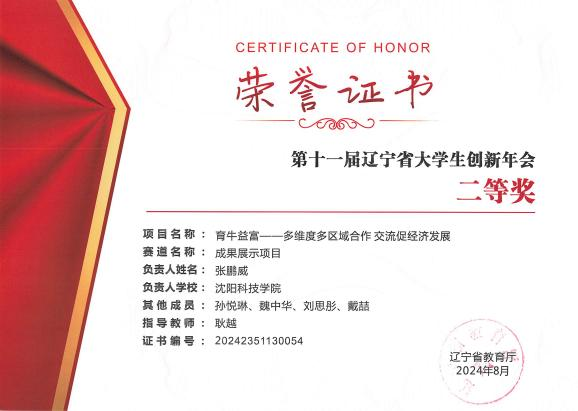 在2024年第十一届辽宁省大学生创新年会中,获得省级二等奖2项。