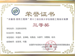 近日,由全国药学类院校大学生专业技术与实验技能竞赛组委会主办,东富龙科技集团股份有限公司与中国医药集团联合工程有限公司协办,重庆理工大学承办的“东富龙-国药工程杯”第十二届全国大学生制药工程设计竞赛落下帷幕。本次比赛中,我校共派出四支精英队伍参赛,凭借卓越表现,荣获国家级三等奖两项,为校争光。
