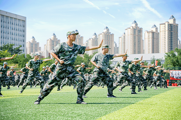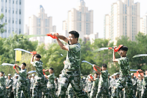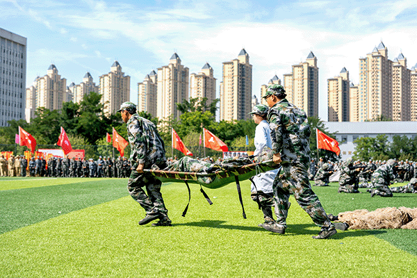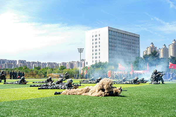 在各科目汇报表演中,全体参训学员以伟大抗战精神和伟大抗美援朝精神为引领,全面融入思想政治教育和爱国主义教育。刺杀操、匕首操、擒敌拳、破风八刀、倒功格斗等表演刚劲有力,气势如虹,胜利荣光字形、图案变换、破风八刀、战术演练与战场救护等特色项目惊艳全场,充分展现了入学以来的训练成果和新时代大学生的蓬勃朝气。