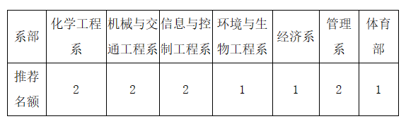 (2)各系部按照实际参加毕业论文(设计)指导工作的教师总数推荐优秀指导教师,原则上控制在当年各系部毕业设计(论文)指导教师总人数的10%以内。具体推优名额如下: