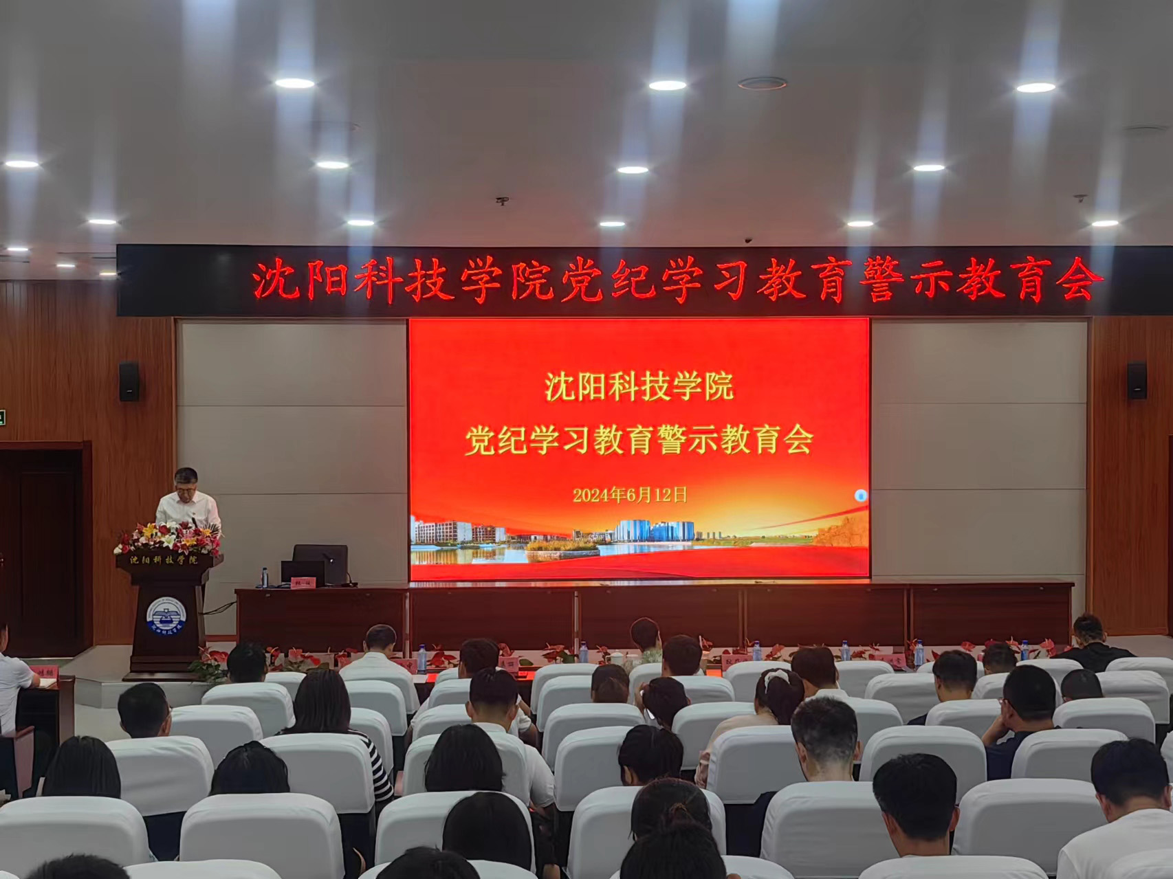 6月12日下午,学校召开党纪学习教育警示教育会,校领导班子成员,学校副科级及以上干部,各党总支(直属党支部)委员会和各党支部支委会全体成员及各系部教研室主任参加了会议,党委书记耿乃国主持会议并讲话。
